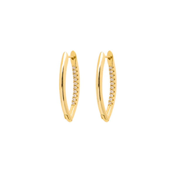 Estas elegantes arracadas Sophia, elaboradas en oro de 24k, presentan una forma ovalada que realza cualquier estilo con su sofisticación atemporal. La delicada línea de zirconias en la parte interna trasera añade un sutil brillo que resalta al usarlas, aportando un toque exclusivo y refinado a tu look diario o en ocasiones especiales.